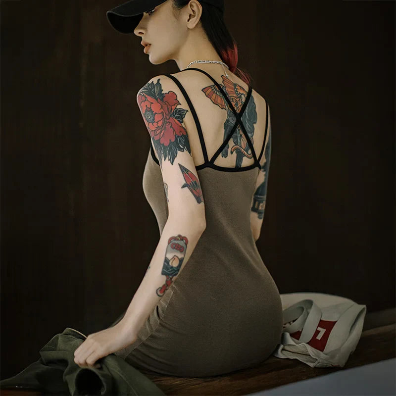 VAAGOON Casual Slim Fit Cross Strap Sleeveless Dress