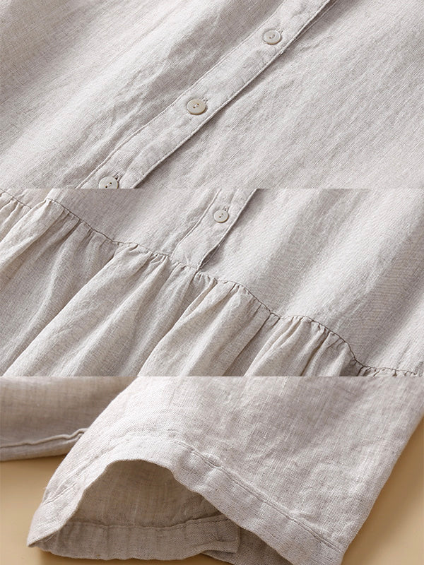 The Vaagoon Lapels Dress brings the natural touch of summer to your style. With its blend of linen and cotton, it is breathable and offers comfort throughout the day. The front button closure, short-sleeve design, and high waist will make it a favorite for those seeking relaxed elegance.