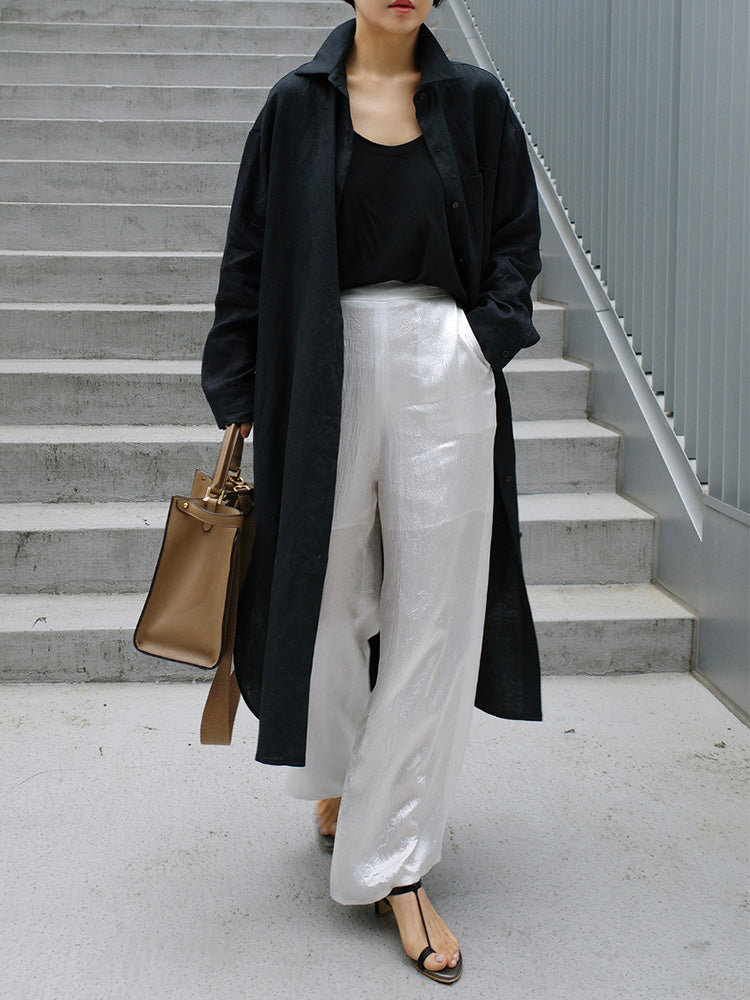 The Vaagoon Linen Dry Dress, where daily elegance meets naturalness, offers a blend of cotton and linen fabric for lightness and comfort. Its long-sleeved design and left chest pocket detail create a simple yet functional style. Thanks to its midi length, you can comfortably wear it whether in the city or on vacation.
