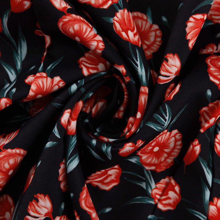 This stylish and elegant dress offers a sophisticated look with its long cut and floral patterns. Made from lightweight and breathable polyester fabric, it is suitable for everyday wear. With ruffled collar and balloon sleeve details, it carries a retro vibe, making it ideal for both spring and summer seasons.