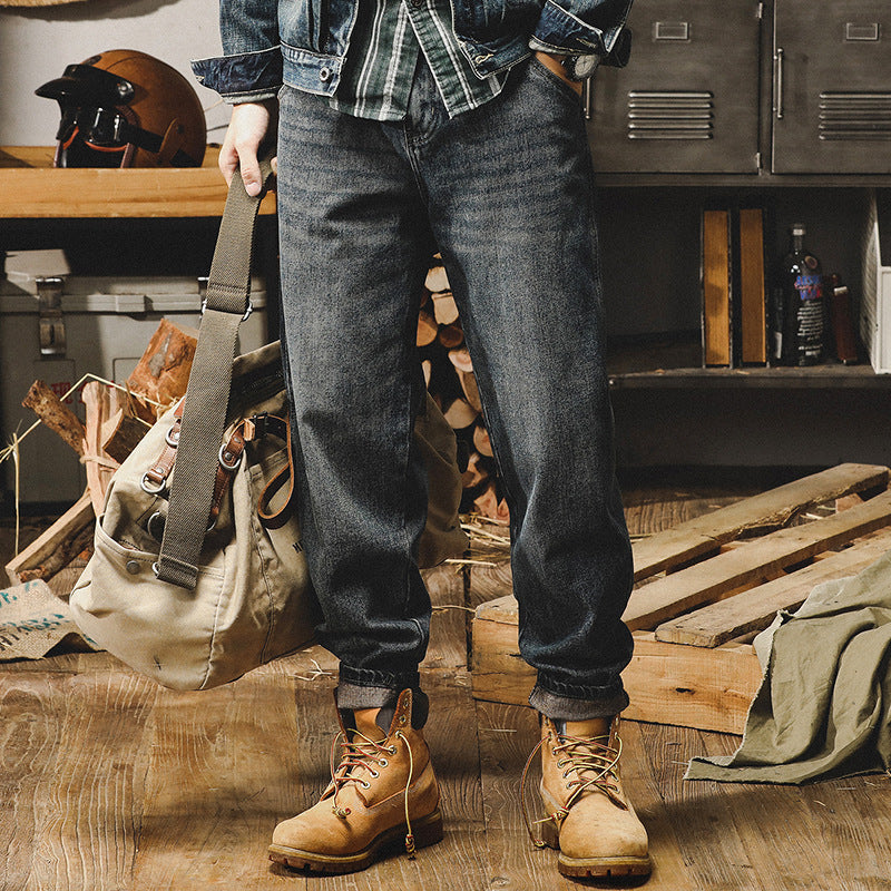 The VAAGOON Dark Wave pants are a stylish model that combines the Ami Haki style with a dark blue tone and American retro stripes. Made from fine cotton fabric, these straight-leg pants offer both elegance and practicality with their three-dimensional cut details and zipper pocket opening. The mid-rise waist and non-iron treatment provide all-day comfort for leisure activities.