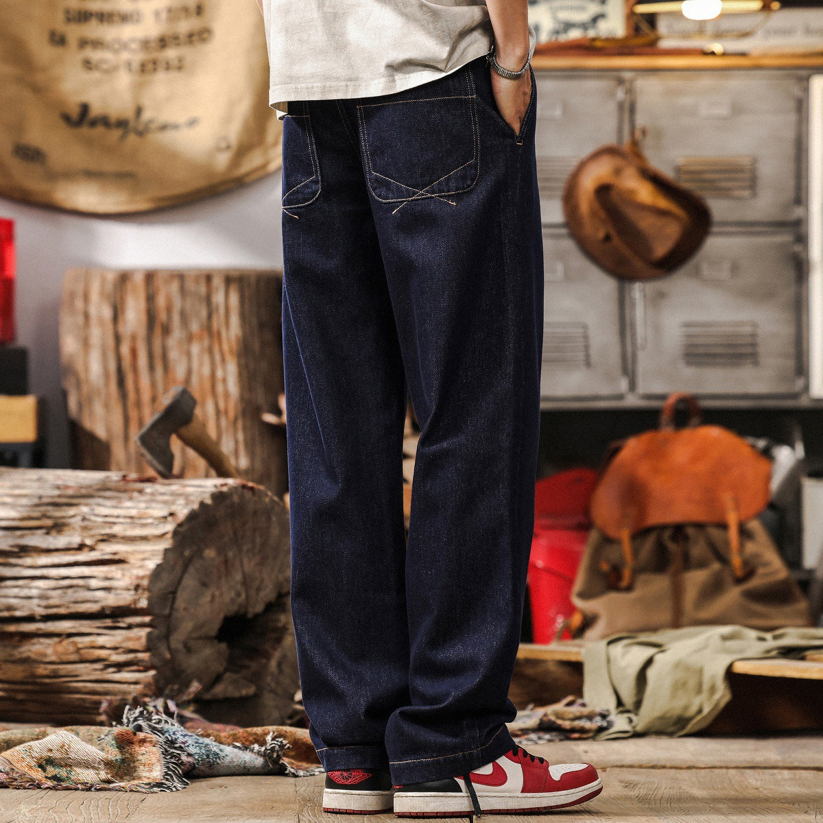 VAAGOON Dusk Rider Stan pants add an energetic touch to American retro street style with their dark blue tones and visible stitched three-dimensional tailoring details. Their slim structure, 91% cotton content, straight leg cut, and mid-rise form offer maximum comfort on spring and autumn days. Thanks to the zipper opening, micro-stretch flexibility, and iron-free treatment technology, they provide a durable and functional experience.