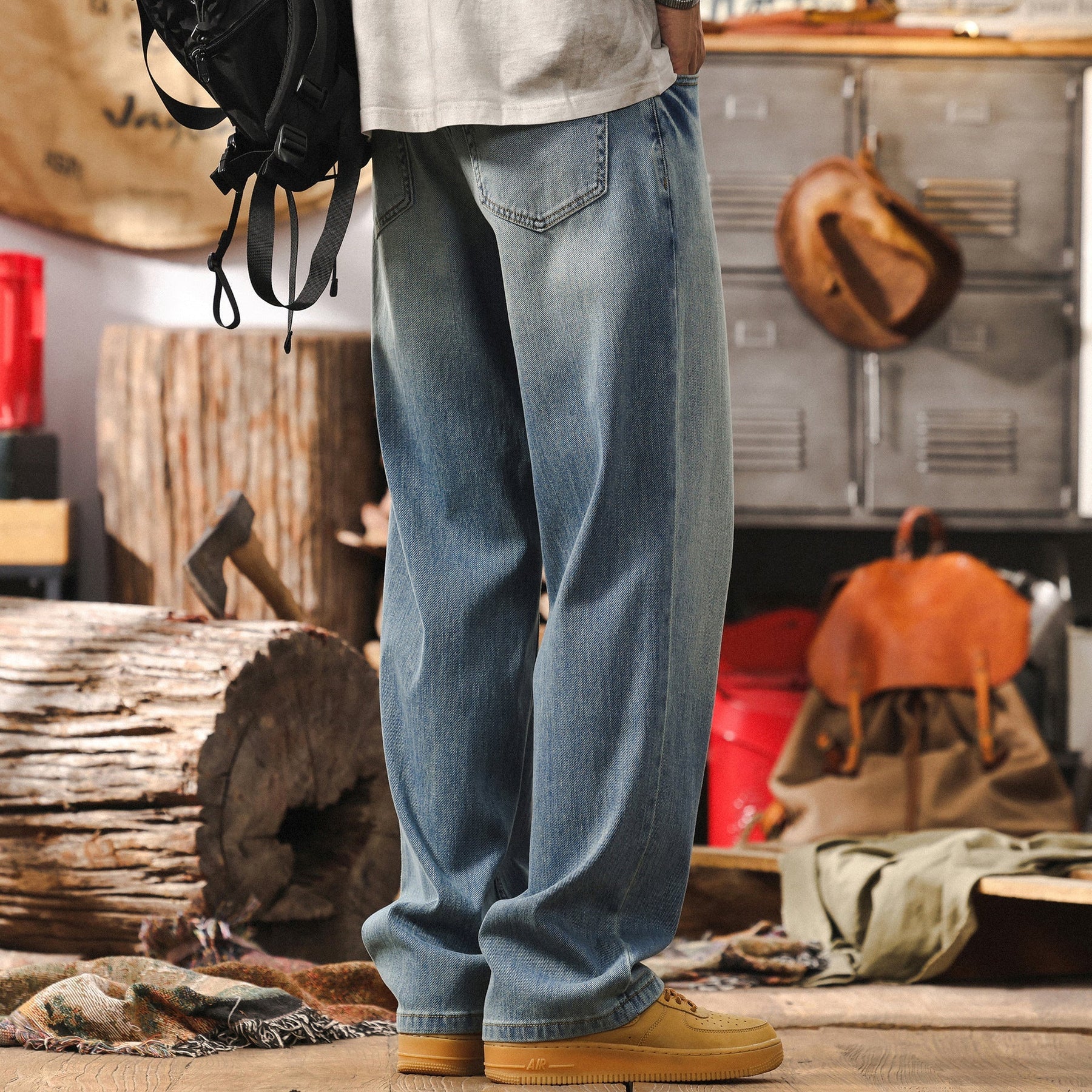 The VAAGOON Indigo Trail Pants bring a touch of American retro flair to your streetwear style with a vibrant blend of medium and light blue tones. Made from 100% jersey cotton, this model offers both comfort and freedom of movement with its three-dimensional cutting and straight-leg design. The mid-rise waist and zipper pockets add practicality to your daily look.