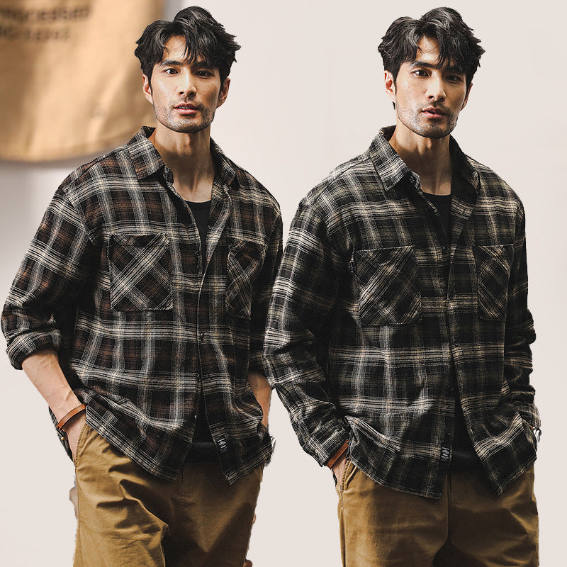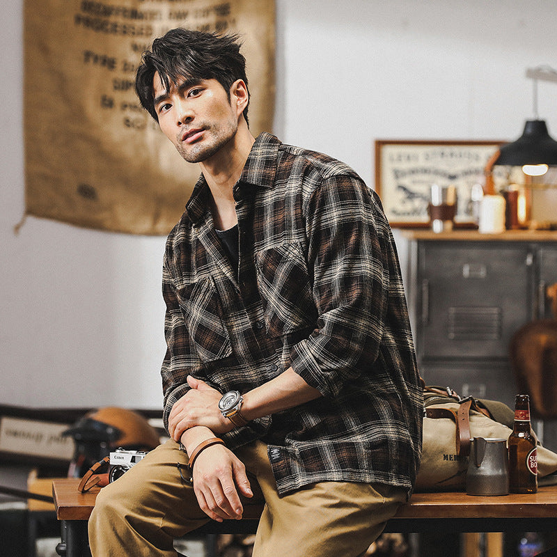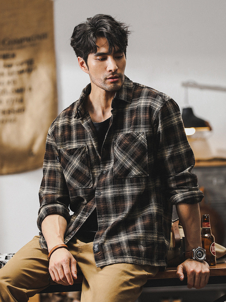 The VAAGOON Checkpoint Grid shirt combines the classic Ami Haki style with a checkered pattern in brown and army green tones, bringing a retro vibe to everyday style. With its 100% cotton lightweight fabric, this short-sleeved model is ideal for summer and transitional seasons, offering comfort throughout the day thanks to its loose fit and wrinkle-free treatment.