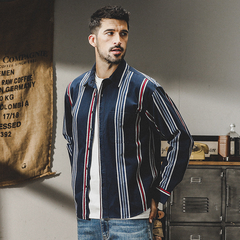 The VAAGOON Crimson Shift shirt captures attention during seasonal transitions with its design inspired by Japanese retro style. Its long-sleeved structure, stripe details, and shirt collar offer both comfort and a stylish appearance. Thanks to its lightweight jersey fabric, it can be worn without the need for ironing, standing out as a dynamic piece of youthful street fashion.