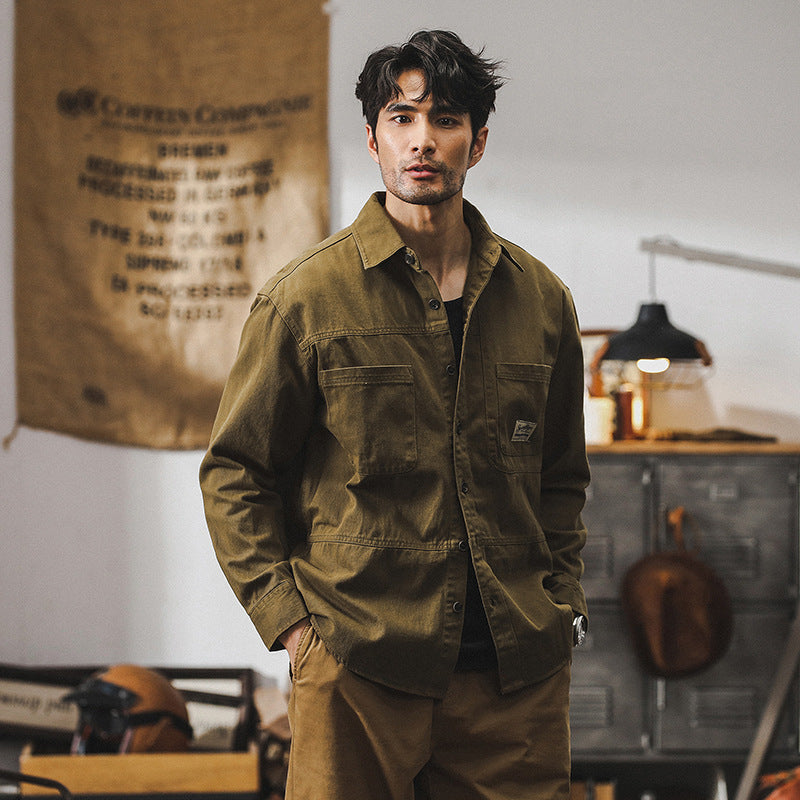 This short-sleeved men's shirt, inspired by Japanese retro style, offers comfort and elegance with its 100% cotton lightweight fabric for warm weather. The stand-up collar detail and striped pattern design add a modern touch to both casual and sporty outfits.
