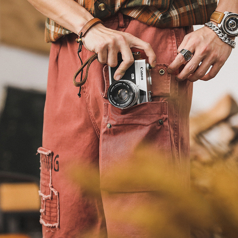 These patchwork-detailed shorts, one of the most unique reflections of retro street style, offer a striking and comfortable choice for summer with their brick-red color and 100% cotton fabric. The ripped pocket embellishments add a rebellious touch to your style, while the loose fit ensures all-day comfort.