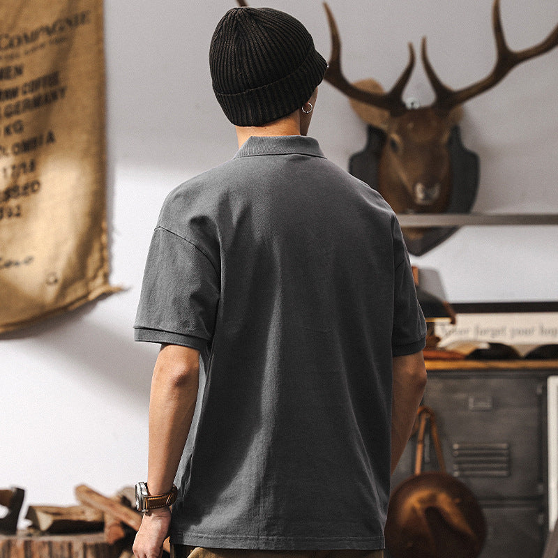 The VAAGOON Embro Wave t-shirt combines sporty elegance with fine detailing. The gray and brown contrast colors, short-sleeved hooded cut, and stand-up collar detail highlight your style on warm summer days, while its cotton jersey fabric and antibacterial properties provide a comfortable wear.