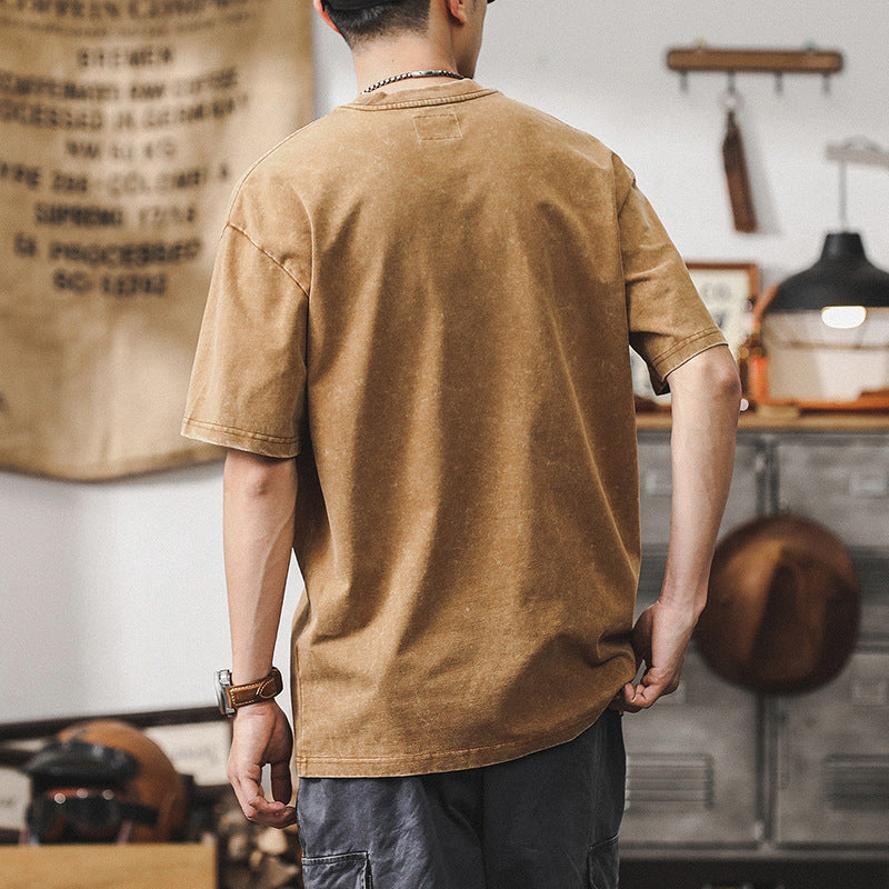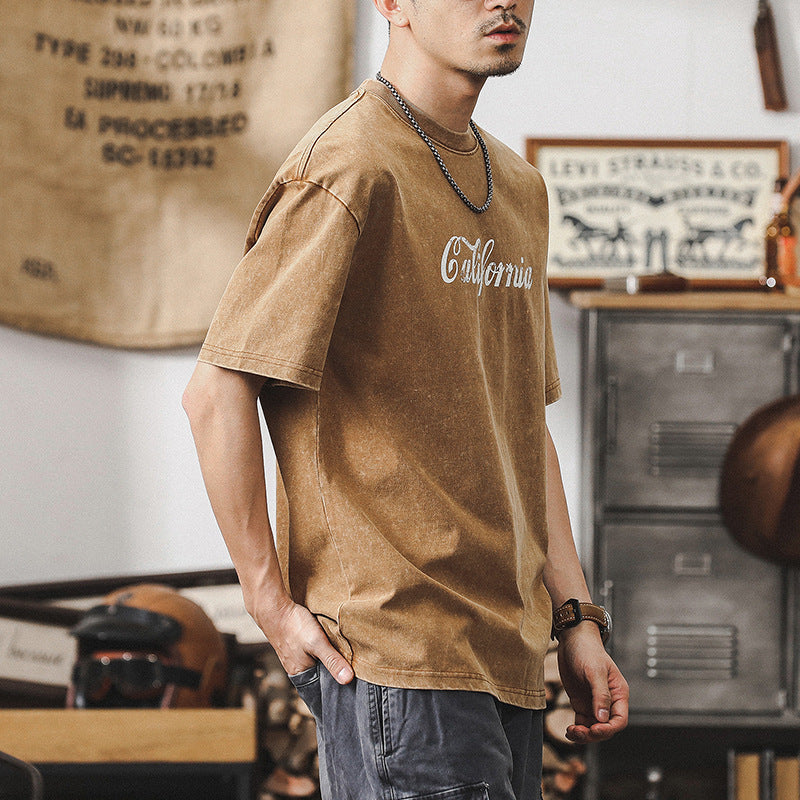 The VAAGOON Outfield Echo T-shirt makes a stylish statement in youthful street fashion with its military-inspired khaki stripes, clean design, and “Text Thought” print. The dropped shoulder and short-sleeve structure combine with the retro blend of brown, black, and green, offering both comfort and elegance for summer days. Its lightweight, breathable cotton fabric keeps you cool and fresh all day long.