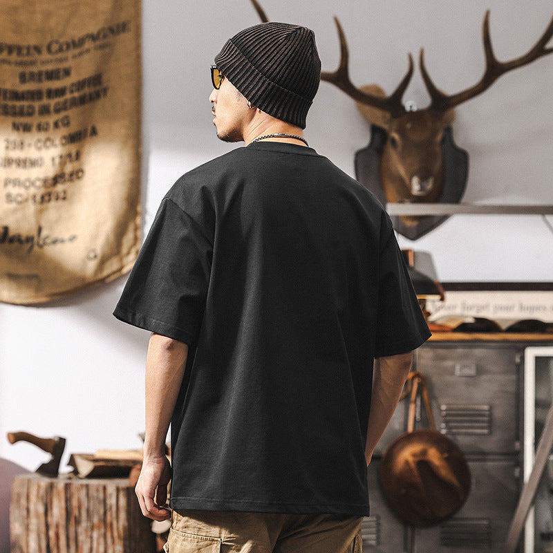 The VAAGOON Phantom Glide T-shirt channels an American retro aesthetic with its Ami Khaki tone, crafted from over 96% cotton jersey fabric. This short-sleeved, drop-shoulder design with a classic round neck delivers freshness and comfort during summer sports, enhanced by its antibacterial feature and iron-free treatment technology.