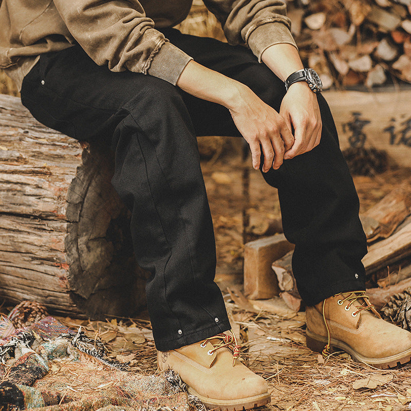 The VAAGOON American Retro Velvet Stitch pants add a distinctive touch to American retro street fashion with their black velvet texture and five-pocket patchwork details. Featuring a mid-rise fit, straight-leg cut, and 100% cotton fabric, they provide both comfort and durability. The zippered design offers ease of wear, while the “iron-free treatment” technology and non-stretch structure help the pants maintain their form over time.