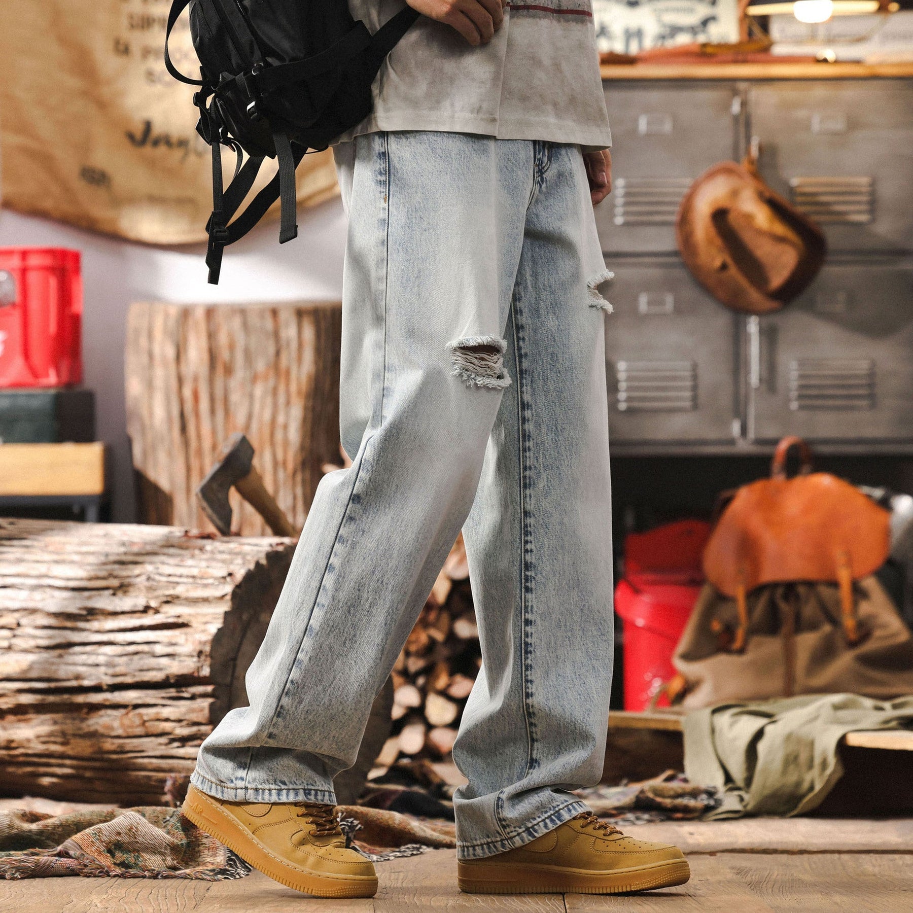 The VAAGOON Azure Circuit pants are a stylish model that embodies American retro tide style with perforated and distressed five-pocket details. The fine cotton texture, straight-leg cut, and mid-rise fit prioritize comfort, while the zippered design and non-iron treatment ensure long-lasting wear.