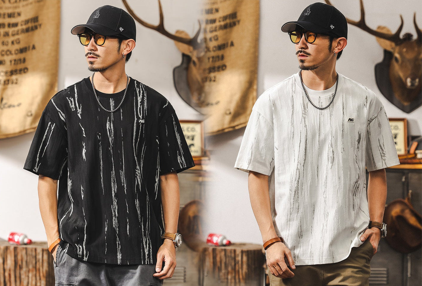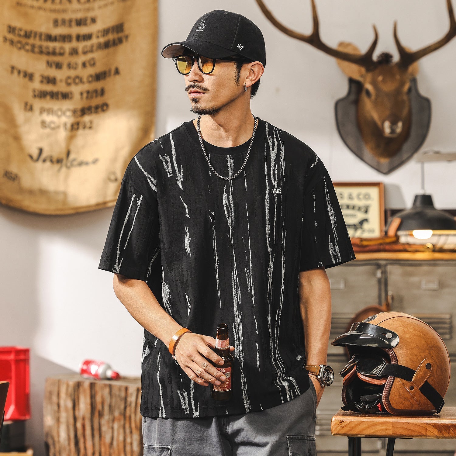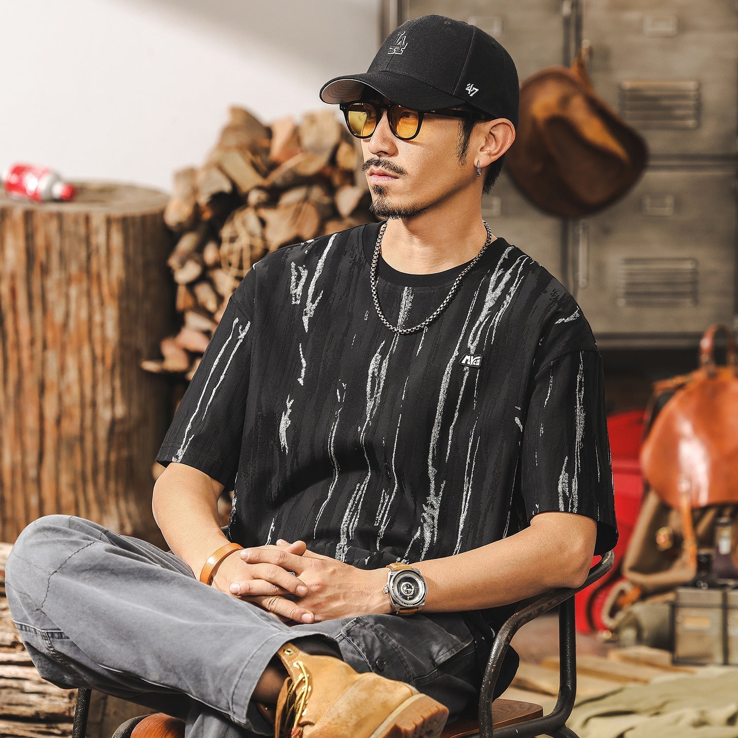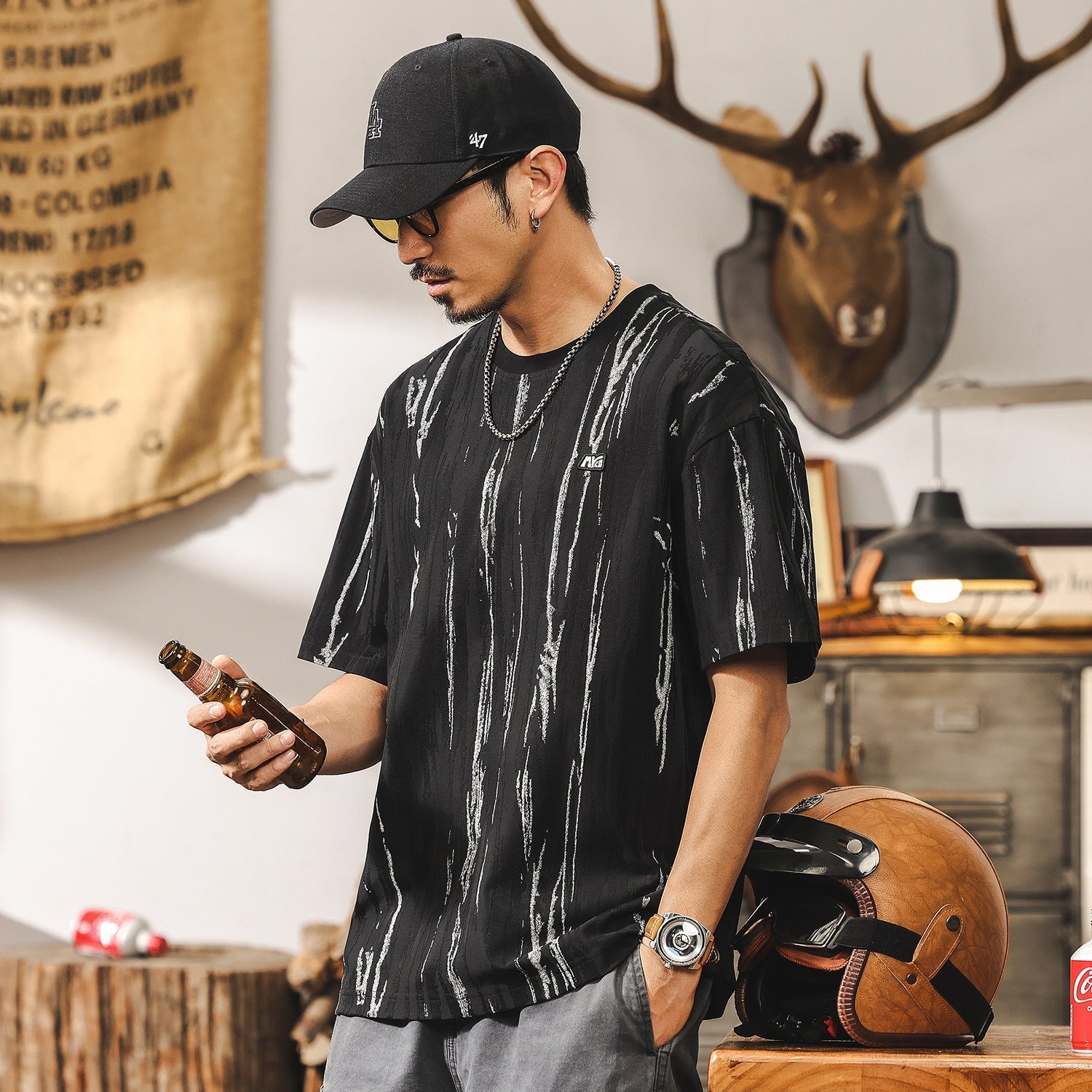 The VAAGOON Retro Emblem T-shirt captures the spirit of classic American retro fashion with jacquard embroidery and creative graphic prints. Its black-and-white contrast, short-sleeved hooded design, and round neckline add energy to your summer 2025 wardrobe, while the fine jersey cotton fabric and antibacterial texture ensure breathable comfort all day long.