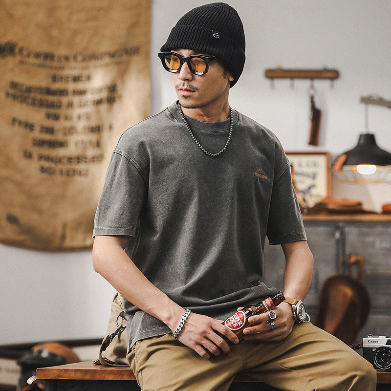 The VAAGOON Rising Symbols T-Shirt blends Japanese retro influence with bold character-pattern designs. Featuring warm transitions of khaki apricot, gray, and brown tones, this lightweight and breathable cotton tee adds energetic flair to your summer wardrobe. With its short sleeves and classic round neck, it’s an essential piece for everyday summer outfits.