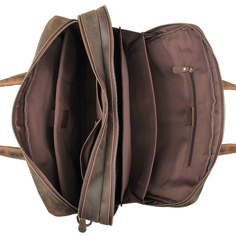 Premium Material Briefcase – Made from thick genuine Crazy Horse Cowhide leather; Full leather, durable top handles, adjustable and removable leather shoulder strap; The leather gives the bag a classy and stylish vintage look.