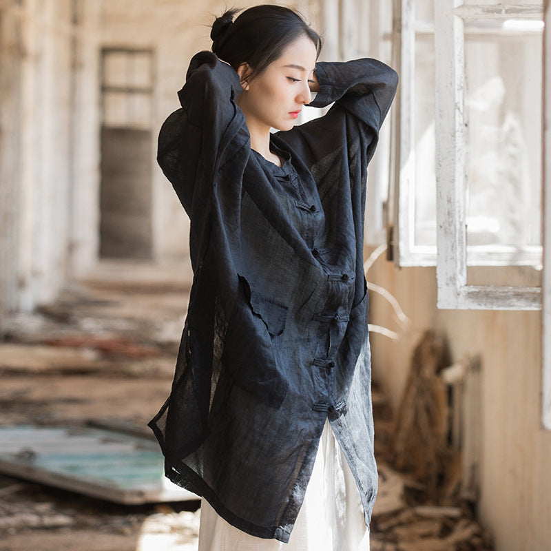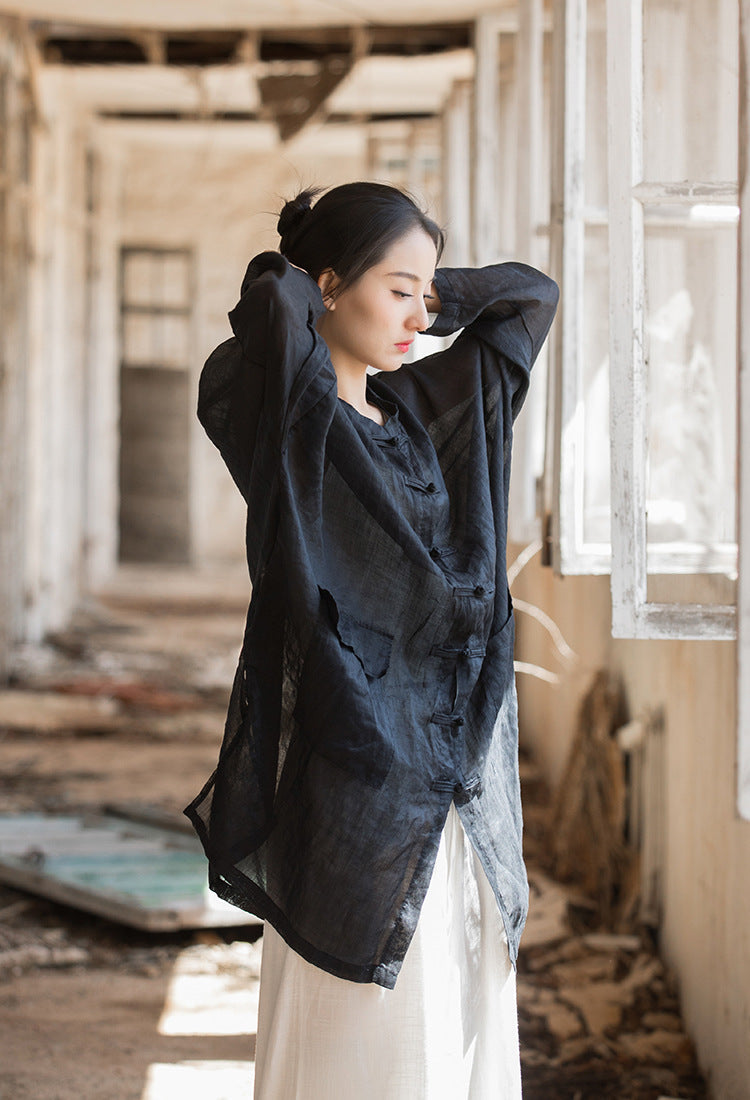 This long shirt, produced with traditional weaving techniques, combines elegance and durability. Its loose fit and refined texture make it a unique choice for both urban living and special occasions.